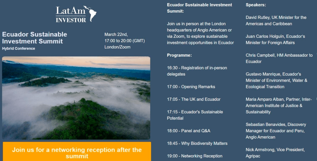 LatAm Investor are holding a Sustainable Investment Summit on 22 March at 17:00-20:00. This is a hybrid event. For those attending in person, there will be a reception after the summit.